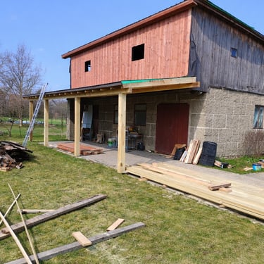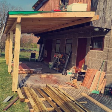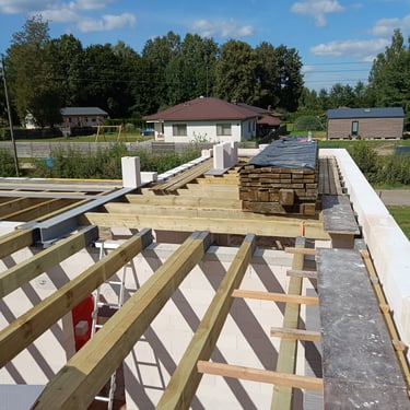 koka nesošo elementu un jumta konstrukciju sagatavošana,