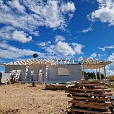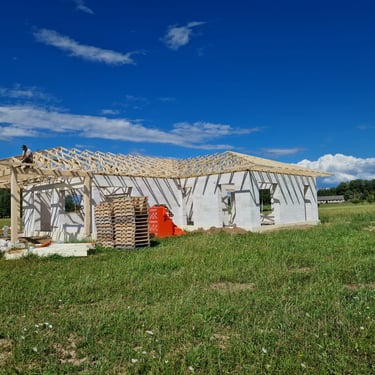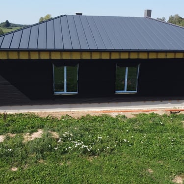 Darbi tika veikti, ievērojot tehnoloģiskās prasības un būvnormatīvus, nodrošinot kvalitatīvu, funkcionālu un vizuāli saskaņotu rezultātu. Fotogrāfijās redzami galvenie darbu posmi – no konstrukciju izbūves līdz pabeigtai fasādei un jumta risinājumam.
