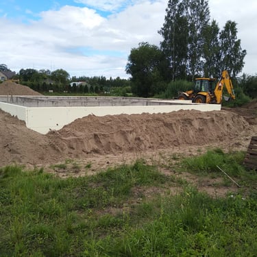 Šajā objektā Stūnīšos tika veikta lentveida pamatu izbūve privātmājai, nodrošinot visus ar pamatu izbūvi saistītos darbus no būvlaukuma sagatavošanas līdz konstrukciju sagatavošanai turpmākajai sienu mūrēšanai.
