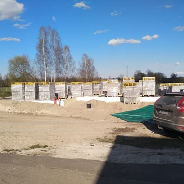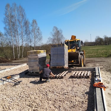 FIBO bloku piegāde, izvietošana objektā un sagatavošana sienu mūrēšanai,