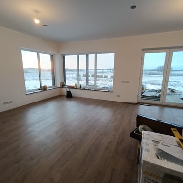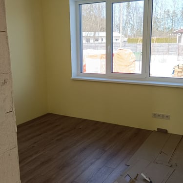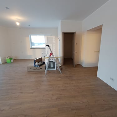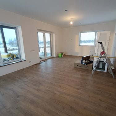 Fotogrāfijās redzami dažādi būvniecības un apdares posmi – no iekšdarbu uzsākšanas līdz pilnībā pabeigtām dzīvojamām telpām. Projekts tika realizēts ar mērķi nodrošināt kvalitatīvu, funkcionālu un ilgmūžīgu mājokli, kas pilnībā atbilst pasūtītāja prasībām.