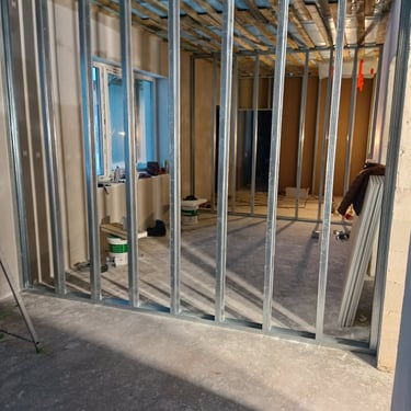 Darbi veikti pakāpeniski, nodrošinot precīzu konstrukciju savietojamību, līmeņošanu un tehnisko risinājumu atbilstību. Galerijā redzami gan būvniecības procesa starpposmi, gan telpu kopskats pēc galveno iekšdarbu izbūves pabeigšanas, pirms apdares darbu pilnas realizācijas.