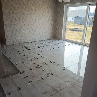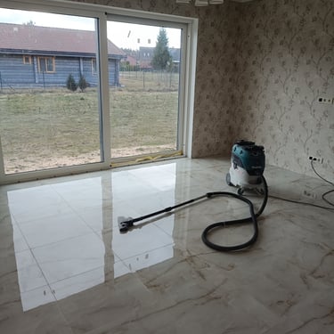 grīdu izbūve, flīzēšanas darbi un apdares sagatavošana,