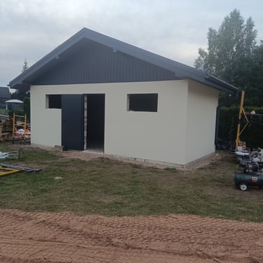 Pēc privātmājas pilna būvniecības cikla pabeigšanas objektā tika uzsākta palīgēkas būvniecība, nodrošinot funkcionālu papildinājumu esošajai apbūvei un vizuālu saskaņu ar dzīvojamo ēku.