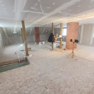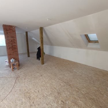 Šajā galerijā attēloti otrā stāva (mansarda) pārbūves un remontdarbu posmi, sākot no esošo konstrukciju atsegšanas līdz telpu sagatavošanai pilnvērtīgai ekspluatācijai.