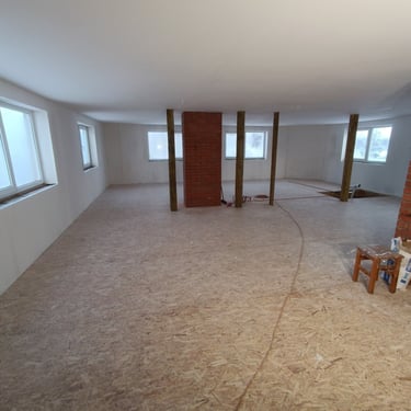 Šajā galerijā attēloti ēkas iekšdarbu izbūves un apdares sagatavošanas posmi, kas veikti secīgi atbilstoši būvniecības tehnoloģiskajām prasībām.